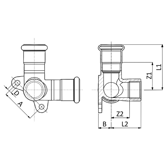 316L Corner Tee with Wall Flange, 15mm x 1/2"