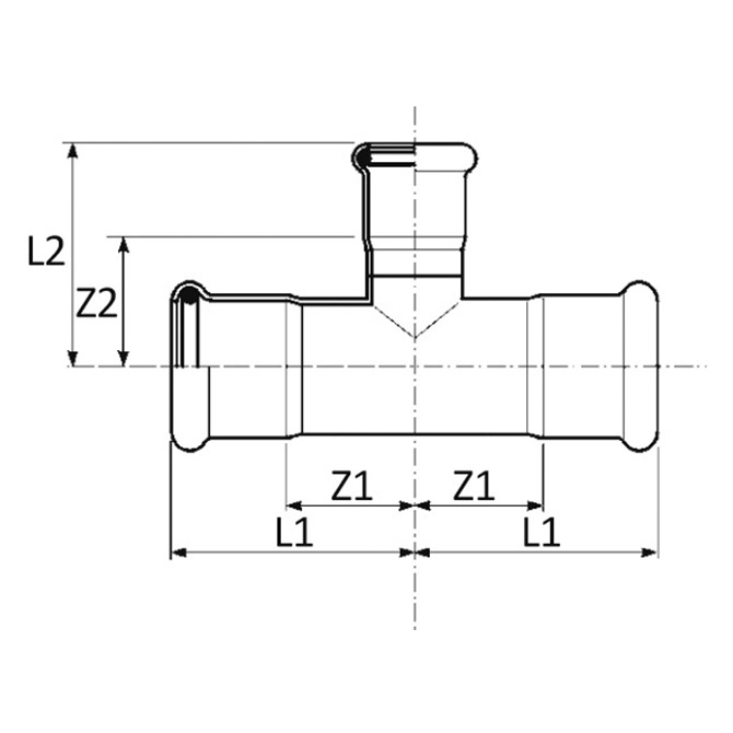 316L Reducing Tee, 54mm x 22mm x 54mm