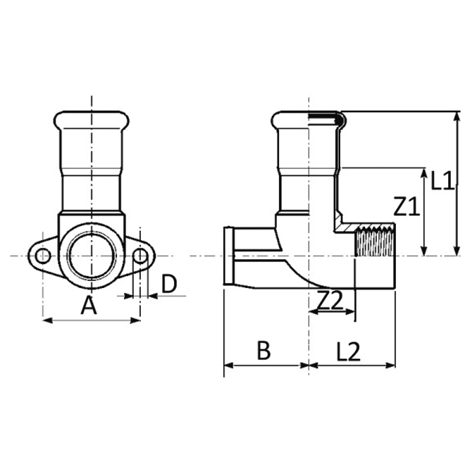 316L Extension Wall Plate, 90° Elbow FF, 18mm x 1/2"