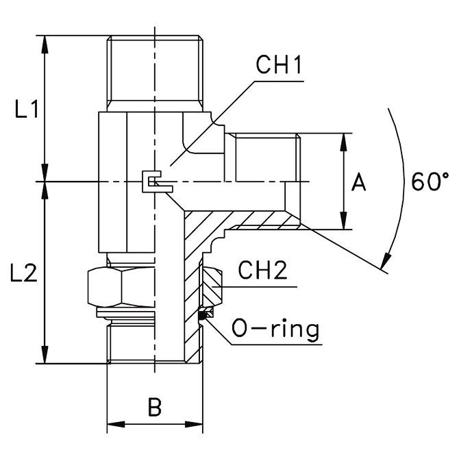 Steel Run Tee, Male Metric M30X1.5 X Male Metric M30X1.5 X Male Metric M27X2.0