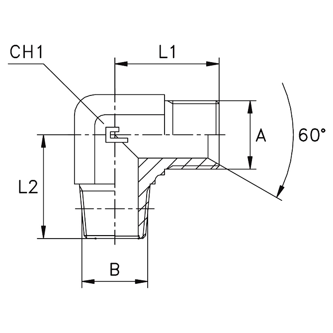 SS316L Elbow 90°, Male BSPP -02 X Male BSPT -02