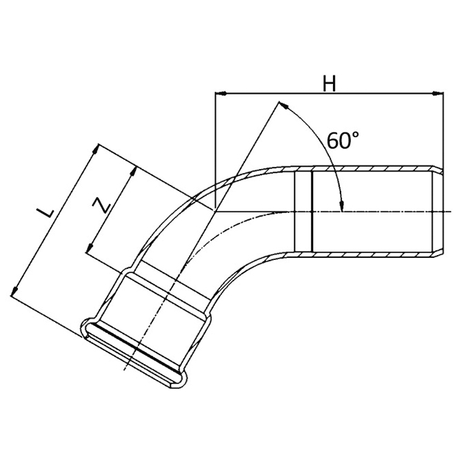 316L 60° Elbow MF, 15mm