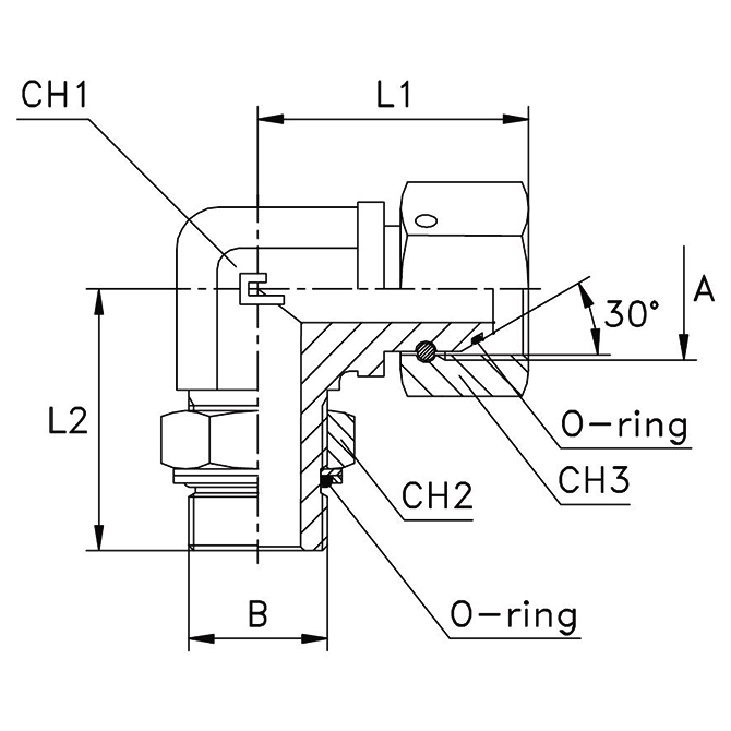 Steel Elbow 90°, Male BSPP -20 X Swivel BSPP -20
